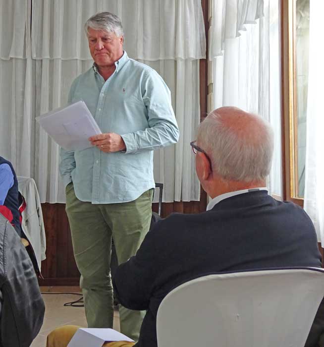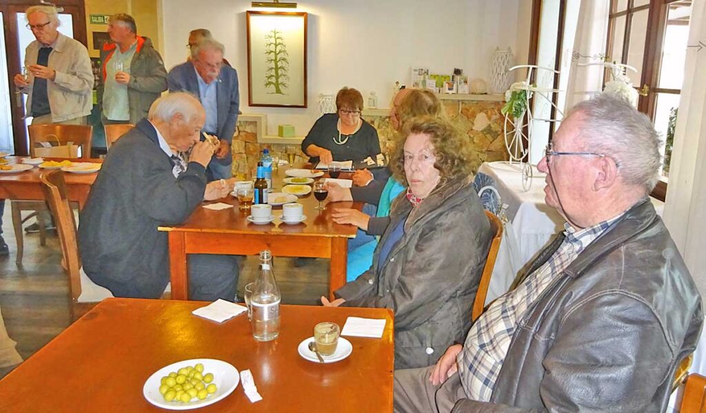 27 Mitglieder haben sich zur Generalversammlung angemeldet. Wie jedes Jahr, treffen wir uns um 11 Uhr im Rest. Binicomprat. Ungewöhnlich ist das Wetter, es regnet. Darum wird der Apero, gespendet von Peter Hofer, im Restaurant serviert. Kurz nach 12 Uhr, beginnt die GV. Der Präsident Fridolin Wyss, begrüsst alle Anwesenden. Edith Marti und Fridolin Wyss, behandeln Punkt für Punkt der Traktanden-Liste. Zum ersten Mal haben sich mehr Mitglieder entschuldigt, nämlich 30, als Mitglieder anwesend sind. Auch der Vize-Präsident musste aus privaten Gründen in die Schweiz reisen. Revisor Hansruedi Baur liest den Kassenbericht vor, der mit grossem Mehr genehmigt wird. Remi Schmid, der Tages- und Ehrenpräsident, führt die Wahl des Vorstands durch. Der bisherige Vorstand wird einstimmig für ein weiteres Jahr wiedergewählt. Anträge von Mitgliedern wurden keine eingereicht. Am Ende der Taktanden-Liste, erklärt der Präsident, die GV als beendet. Rechtsanwalt Peter Hofer, informiert uns über den neuesten Stand, des Spanisch- Schweizerischen Erbrechts. Danach setzen wir uns an die grossen runden Tische, die für das Mittagessen vorbereitet sind. Es gibt einiges zu Erzählen und zu Lachen. So vergeht die Zeit im Nu.