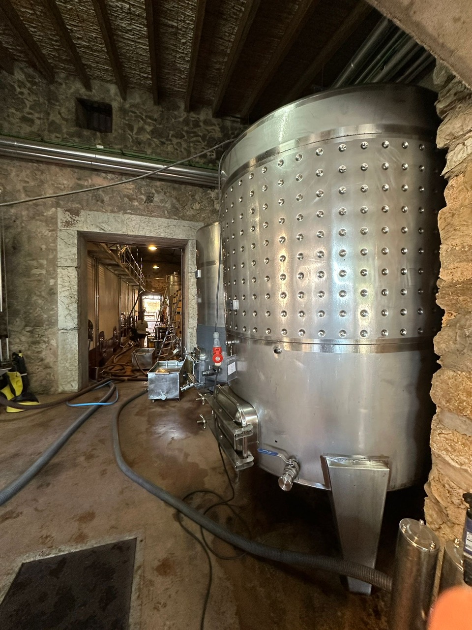 Beim Spaziergang durch die Anlagen konnten bis zu 300 Jahre alte Eichenfässer bestaunt und den Mitarbeitenden beim Aussortieren der Trauben über die Schulter geschaut werden – echte Handarbeit mit Liebe zum Detail. Das Weingut beschäftigt rund 16 feste Mitarbeitende, während der Weinlese steigt die Zahl auf über 40.