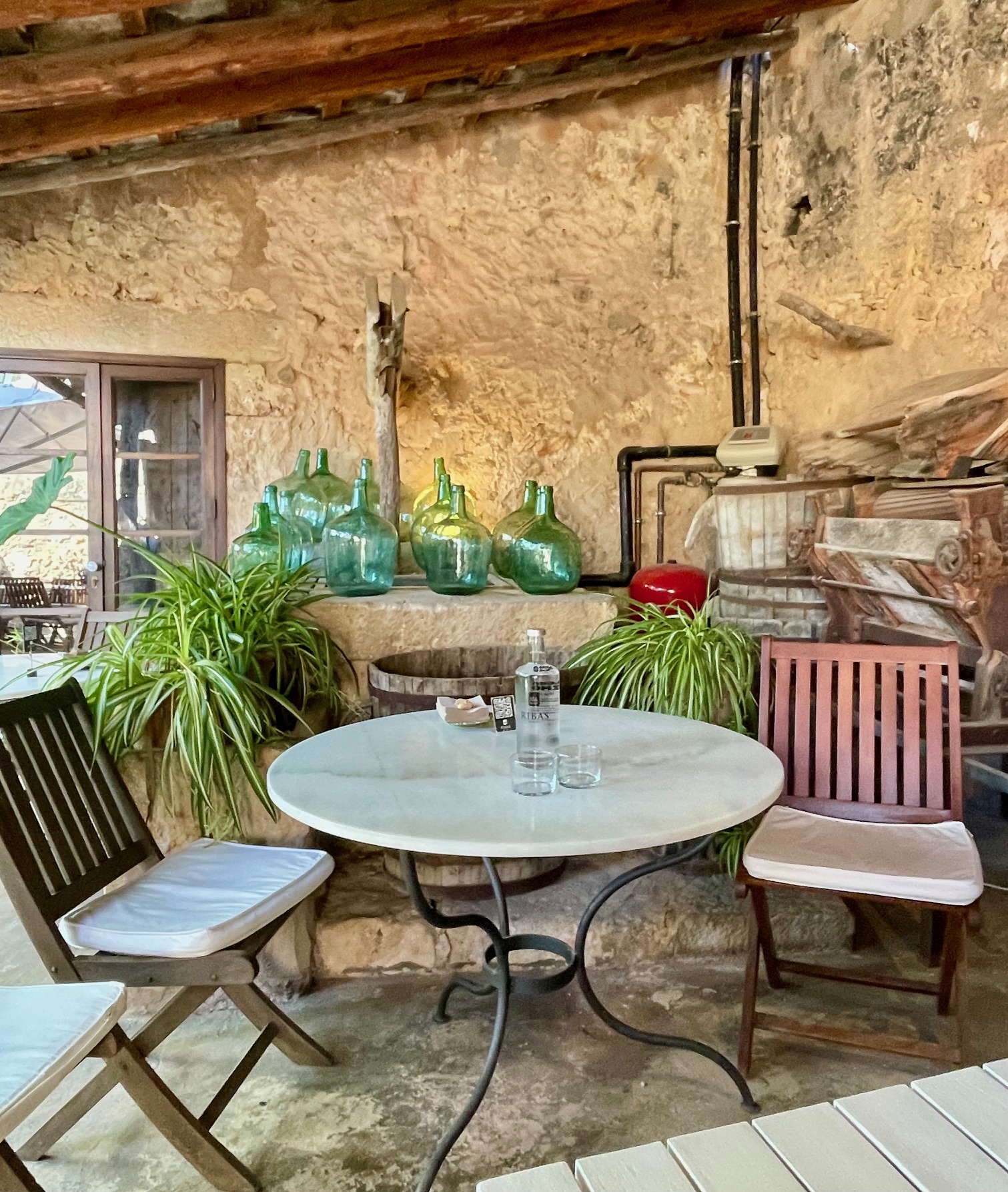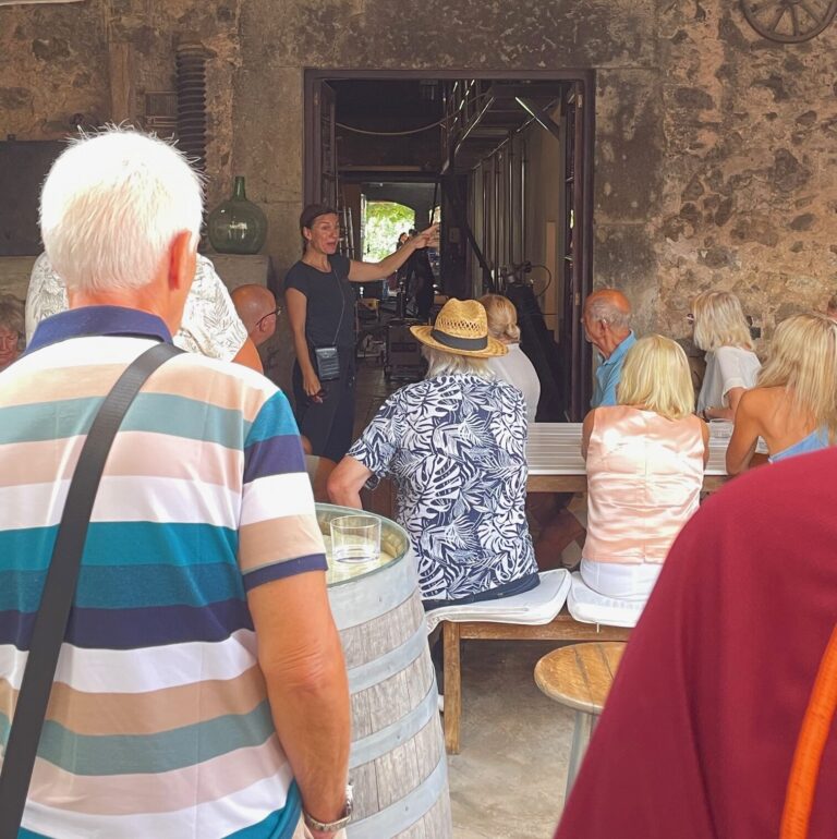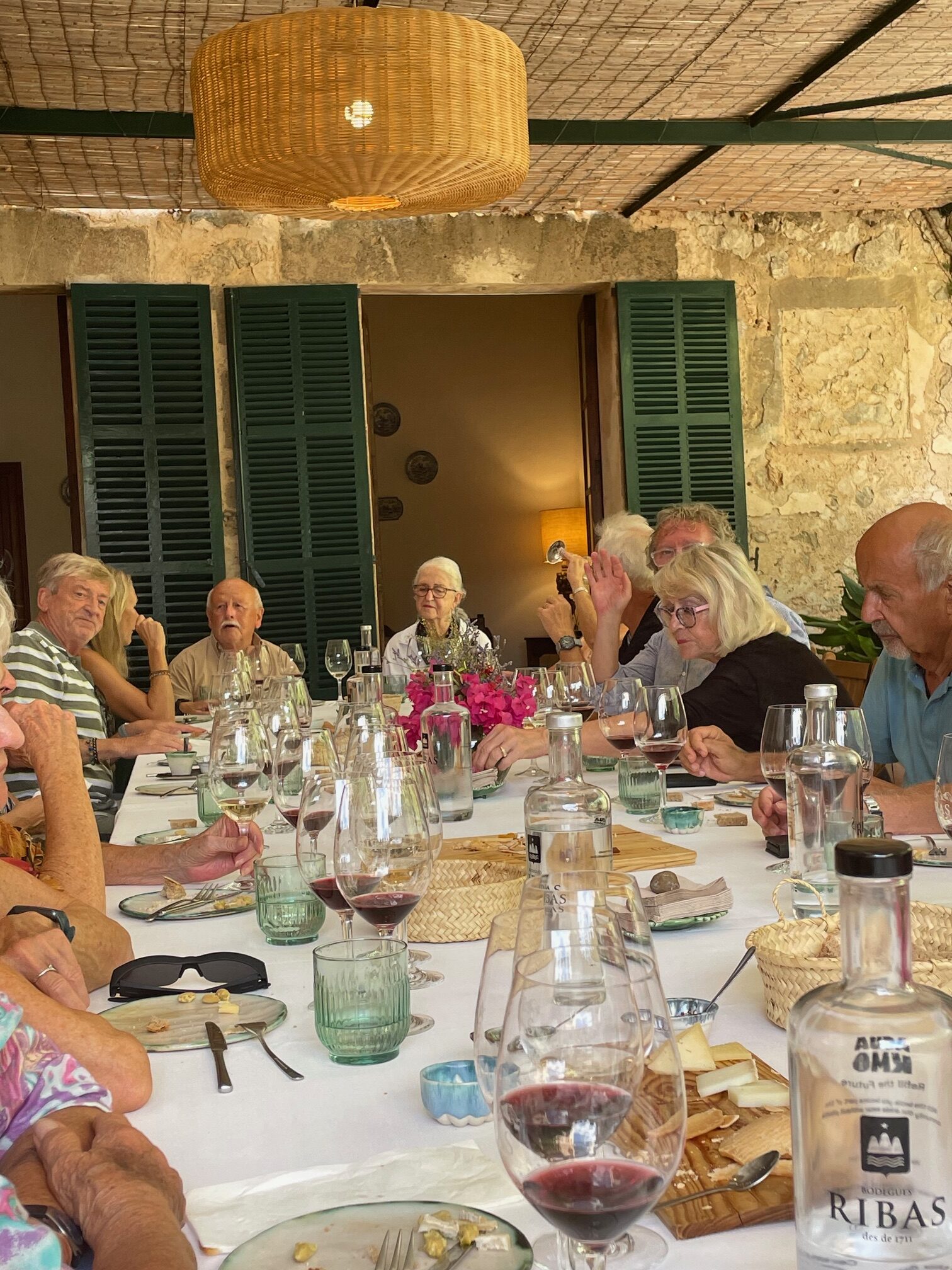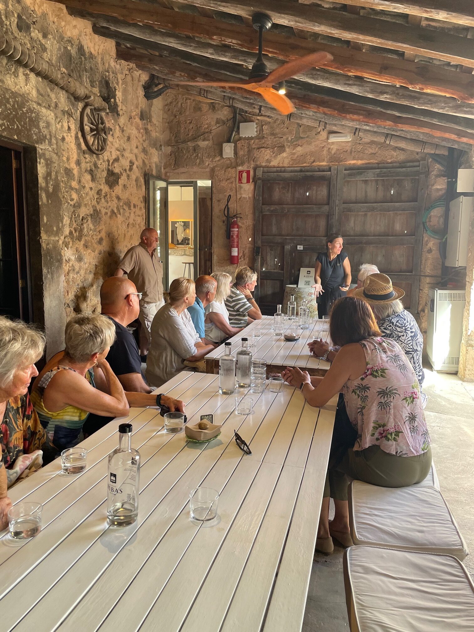 Im Anschluss an die Führung folgte die Verkostung von vier Weinen, begleitet von einer köstlichen Platte mit Ibérico-Schinken, Käse von den Balearen, frischen Feigen, mallorquinischen Mandeln, Oliven und Bauernbrot mit nativem Olivenöl. Serviert wurde im idyllischen Innenhof des Herrenhauses Ses Cases de Can Ribas, wo die Gruppe an einem festlich gedeckten Tisch Platz nahm.