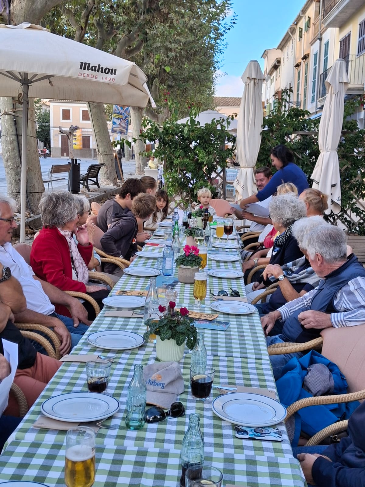 Nach rund zweieinhalb Stunden waren die drei Spielrunden vorbei, und die hungrigen Mägen machten sich bemerkbar. Zum gemeinsamen Mittagessen ging es in das nahegelegene Ristorante Sa Plaça, wo wir einen langen Tisch auf der Terrasse reserviert hatten – perfekt für entspanntes Beisammensein unter freiem Himmel bei schönstem Wetter.